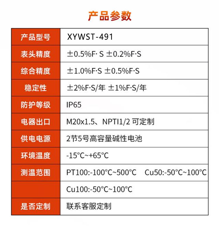 供電電池: 內置3.6V/2.4Ah工業鋰電池1節,連續使用≥3年