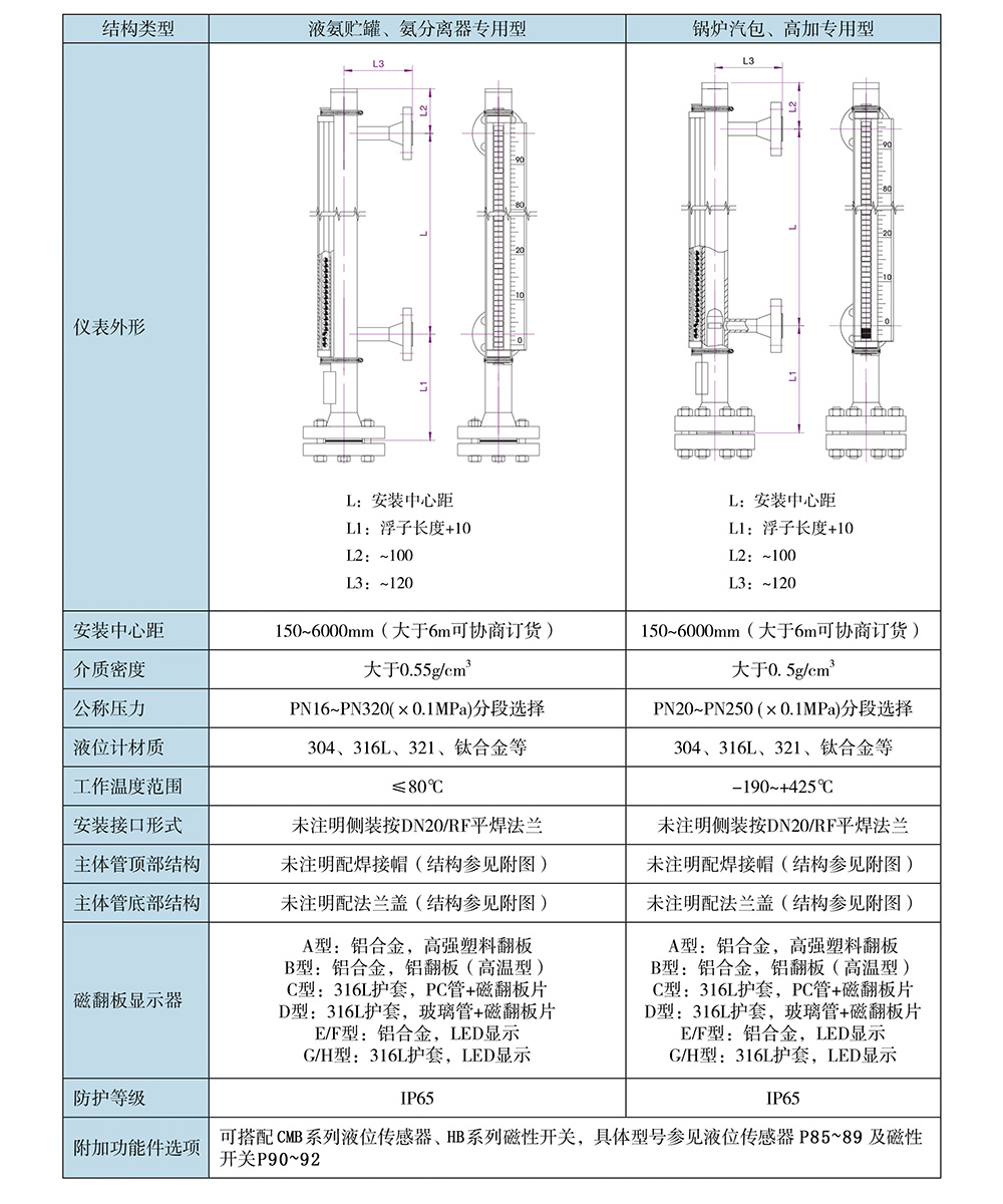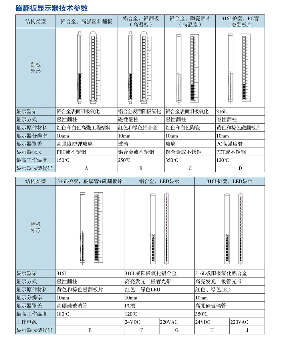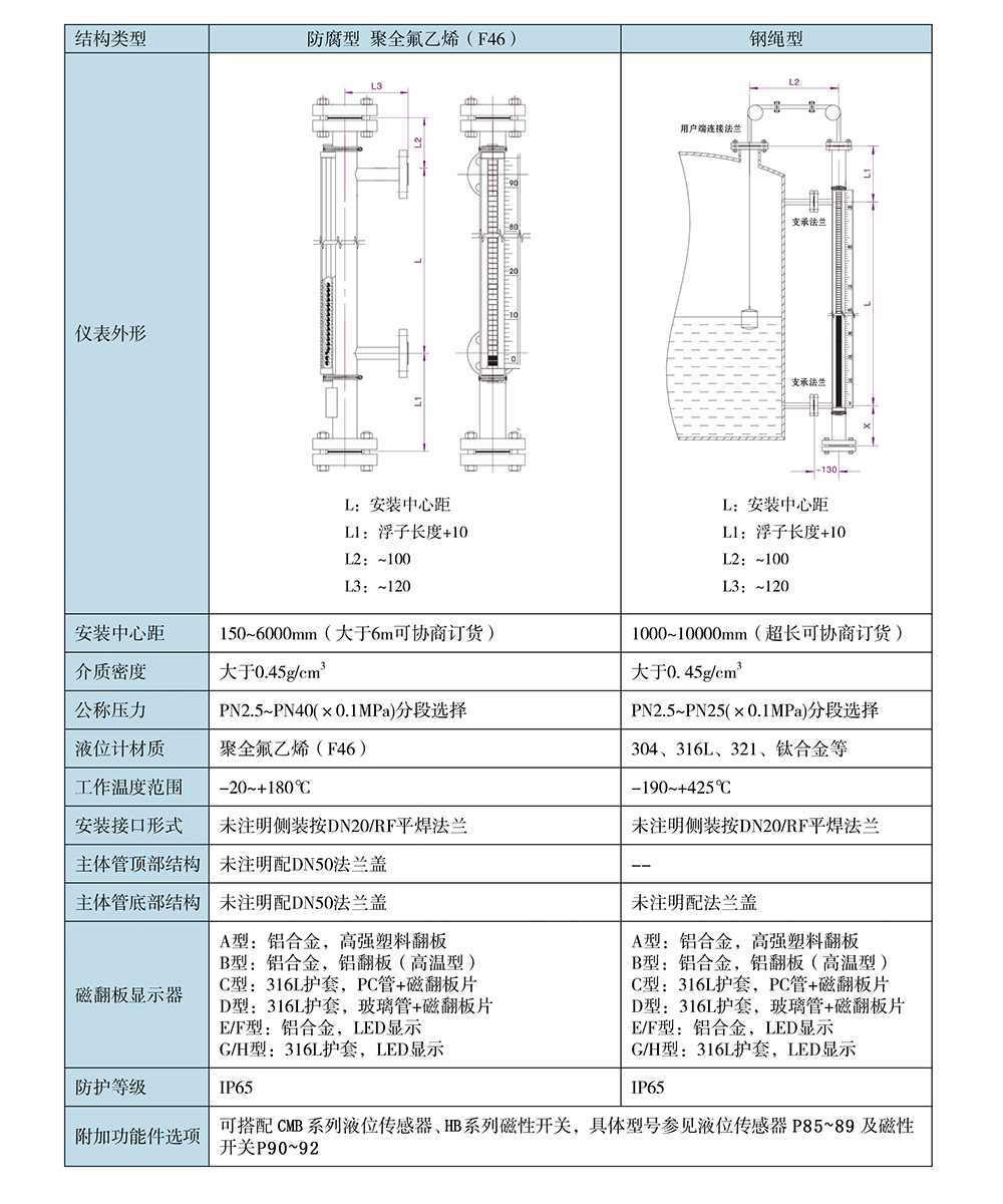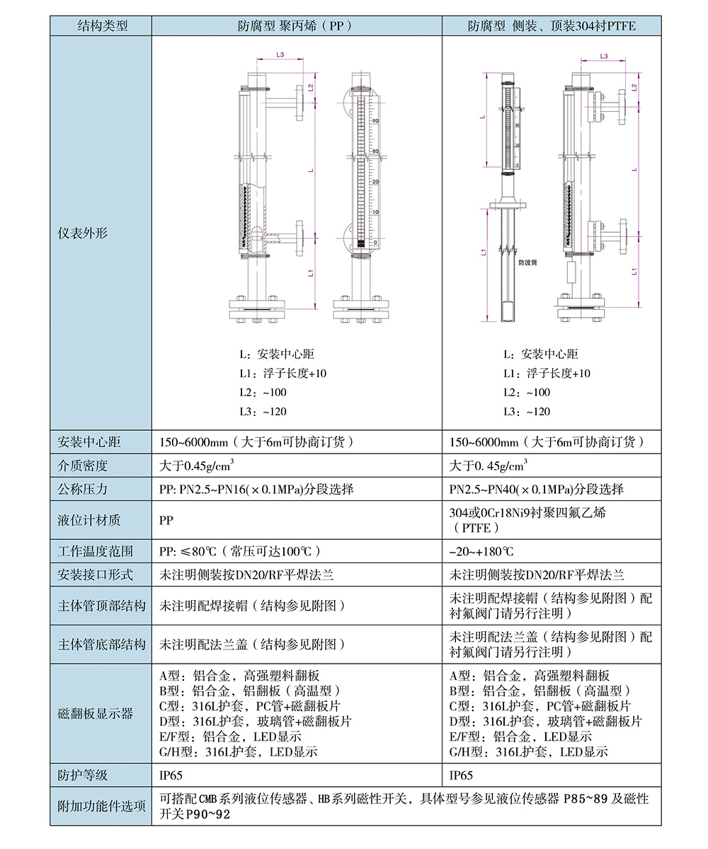 磁翻板液位計是一種新穎的類似于直讀式液位計的檢測儀表,它利用磁吸引原理,使測量指示機構與被測介質完全隔離,為各種介質液位的檢測提供了安全可靠的手段和方法。磁翻板液位計的工作原理:通過測量元件磁性浮子將液位的變化經磁耦合驅動指示標尺上的雙色(紅與白)指示柱翻轉,使液面以下指示紅色,液面以上指示白色,很醒目、清晰地顯示出容器中的液位。根據觀察方向的需要,翻柱面板朝向可隨意調節。